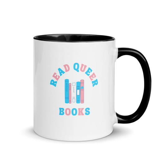 Read Queer Books (Transgender Colors) Mug with Color Inside